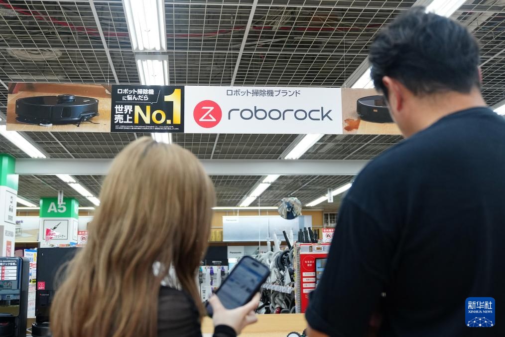 这是10月16日在日本东京一家电器商场内拍摄的石头扫地机器人宣传横幅。新华社记者 贾浩成 摄