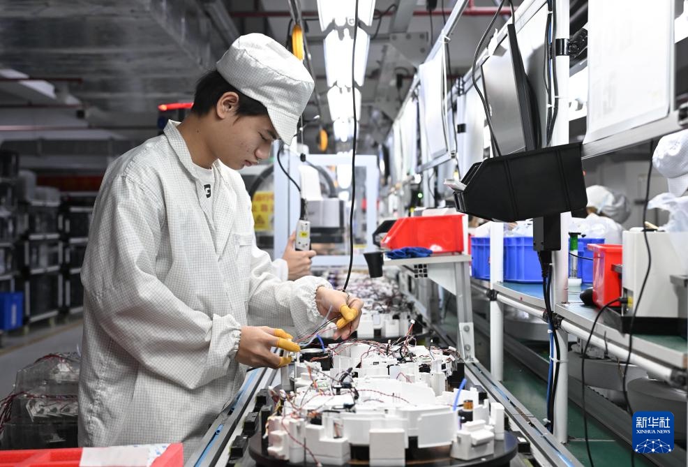 10月10日,在广东省惠州市,工作人员在石头科技生产车间工作。新华社记者 邓华 摄
