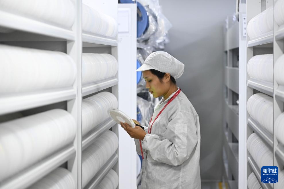 10月10日,在广东省惠州市,工作人员在石头科技电子仓库内检索信息。新华社记者 邓华 摄